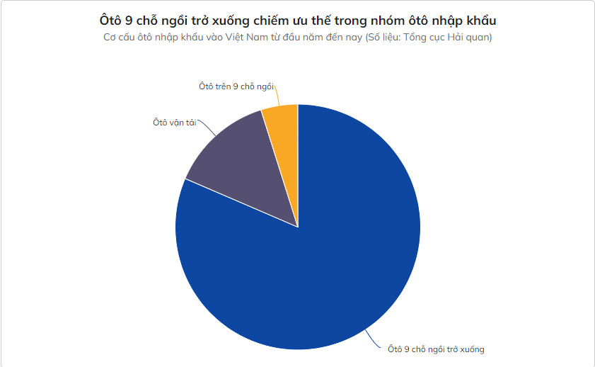 Trong đó, ôtô 9 chỗ ngồi trở xuống đạt 39.290 xe, còn lượng ôtô vận tải và ôtô trên 9 chỗ ngồi nhập khẩu vào Việt Nam trong cùng kỳ lần lượt ở mức 6.593 xe và 3.348 xe.